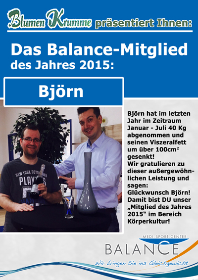 Herzlichen Glückwunsch Johanna, Herzlichen Glückwunsch Björn, Ihr seid unsere Mitglieder des Jahres 2015!